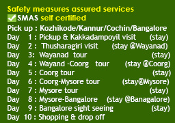 Kakkadampoyil-Thusharagiri-Wayanad-Coorg-Mysore-Bagalore (9nights 10days)