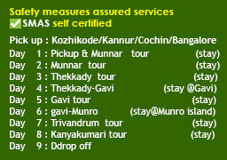 Munnar-Thekkady-Gavi-Munro Island-Trivandrum-Kanyakumari(8nights 9days)